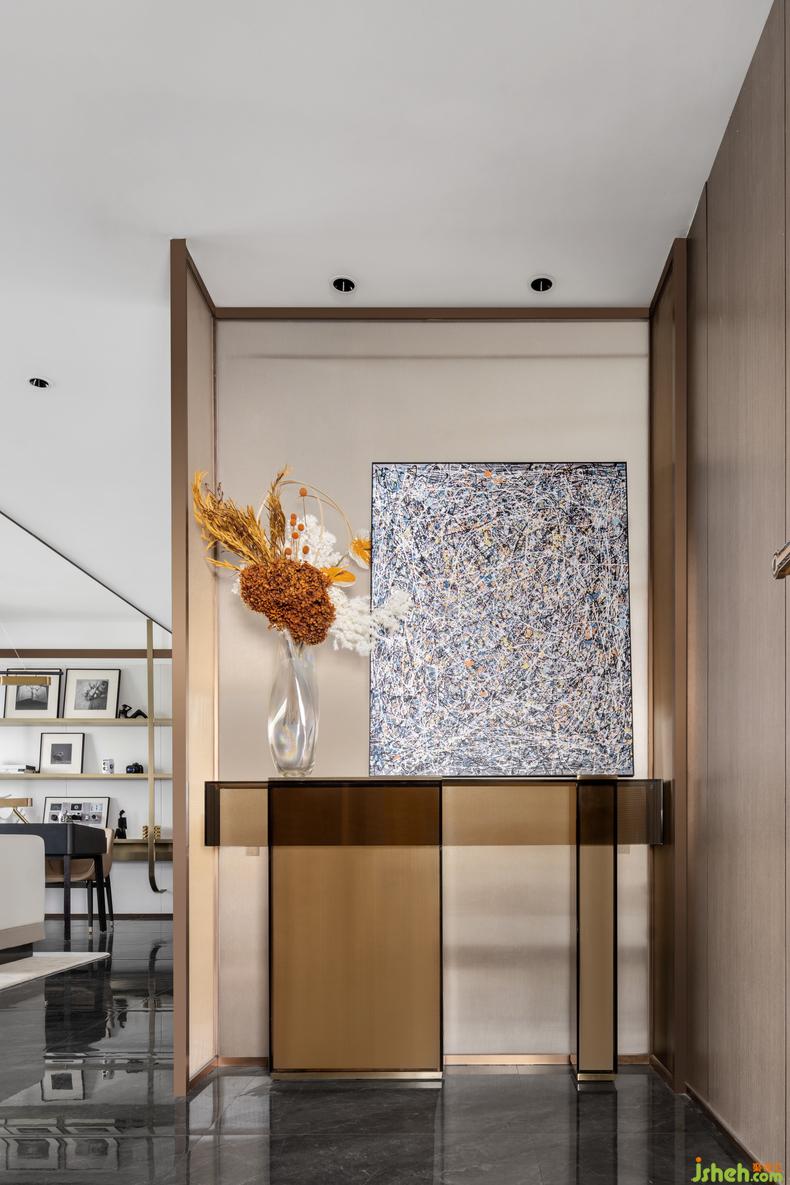 抽離過多的色彩情緒,以幾何塊面、材質(zhì)紋理以及藝術(shù)畫幅形塑空間中的畫面感,樣板房設(shè)計簡單卻又耐人玩味。