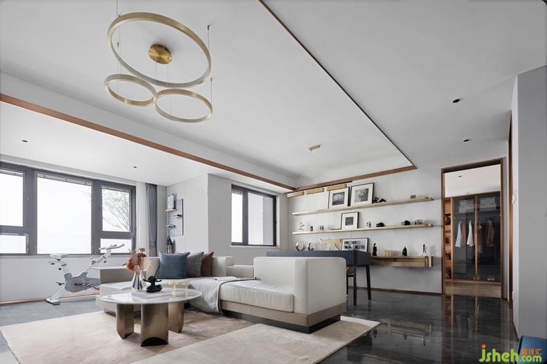 空間內(nèi)以賓利金為主色調(diào),搭配淺色系底色,低調(diào)沉穩(wěn)的奢華給人以無限的自由包容。樣板間設(shè)計選擇這一抹流金作為空間敘事的基調(diào),傳遞生活態(tài)度,述說關(guān)乎舒適歸屬感的解讀。