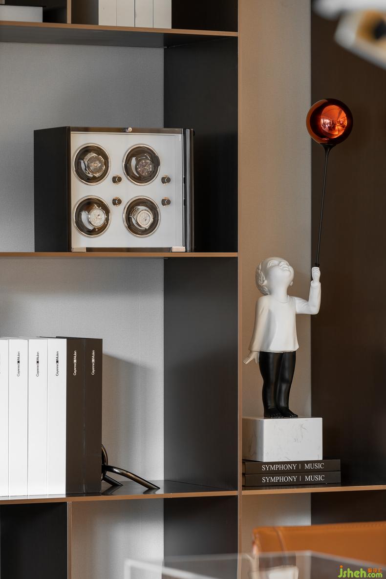 壁柜融合空間整體設計風格擺放藝術(shù)品,同時又不失實用性,將過往的榮譽和紀念一起收藏。