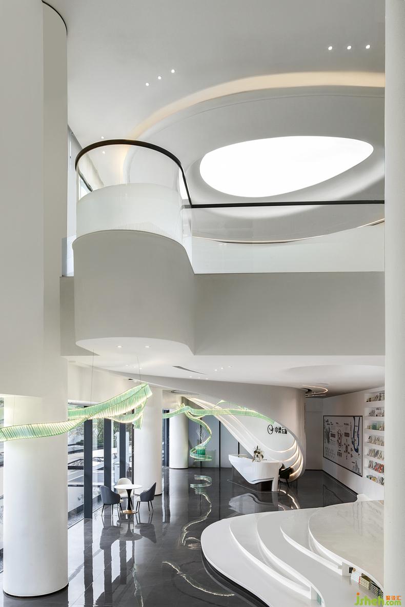 由接待前廳過渡至?xí)?,沿墻體一側(cè)自然剖開的不規(guī)則空間,室內(nèi)設(shè)計(jì)師以曲度勾勒出層次框景,讓流動(dòng)的美感打破空間的限定,似有似無間延伸空間縱深感。