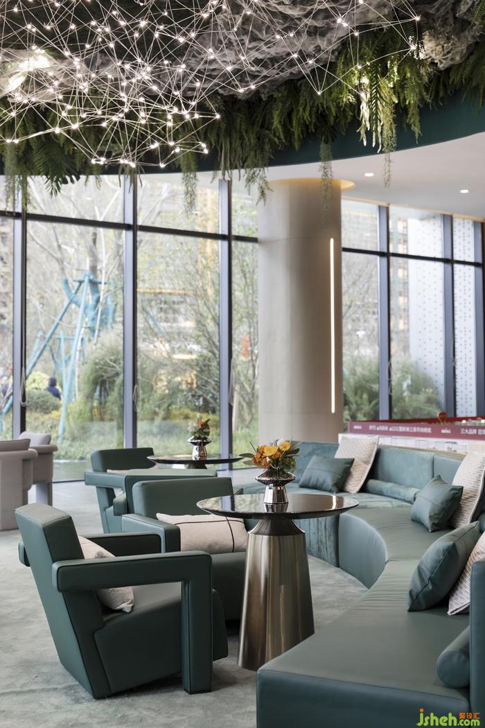 金色絲線交織的光影,串合顆顆輕盈微光,售樓處設(shè)計(jì)如陸棲流螢。散發(fā)出來的粒子氣息,似生態(tài)粒子飛舞和生命體的靈魂微粒:動(dòng)態(tài)而柔軟,在茂盛的詩(shī)庭蔓延出生物之美,讓每一位來訪者享受一場(chǎng)視覺盛宴。