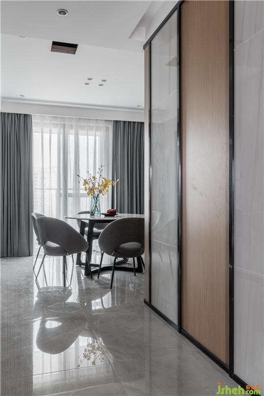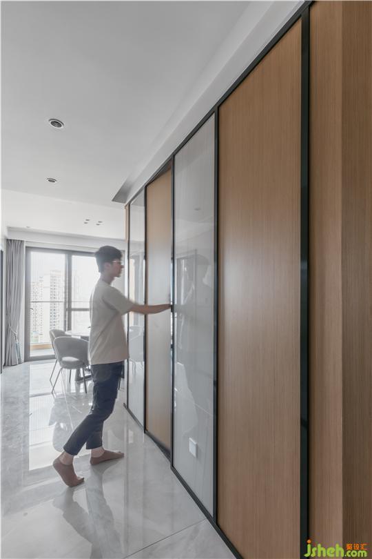 改造后,不僅把過道變的更寬,且隱形門的私宅設(shè)計,讓整個立面更加的簡潔。