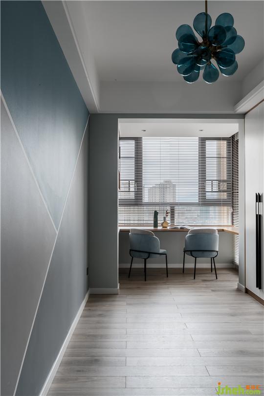 書房一開始設(shè)計的就滿足了男主人”大大的書桌“的要求,面向花園的大窗,陽光從百葉中調(diào)皮的擠進來,這便是最美的風(fēng)景。私宅設(shè)計不規(guī)則圖案的磁力黑板墻,不僅是為了未來的寶寶,女主人偷偷透露的,這其實是眼前這個大男孩一直想要的。