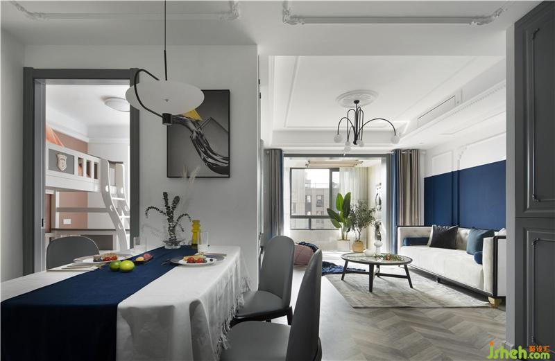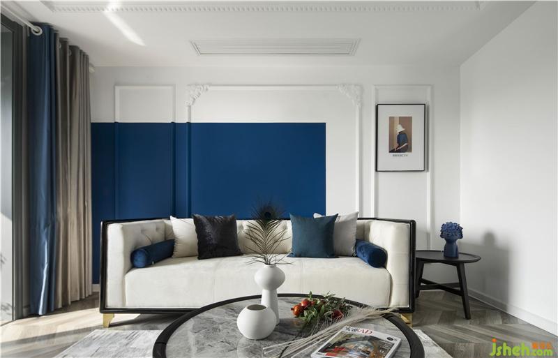 這張圖片妥妥的體現(xiàn)了“歲月靜好,現(xiàn)世安穩(wěn)”的生活現(xiàn)狀。沙發(fā)背景墻我沒有滿刷克萊因藍色,我希望多留白,對比度強烈,更能使這個空間干凈,明亮。藍色穿過線條后,讓原本有弧度的線條被切割得有棱有角有硬度。南京室內(nèi)設(shè)計師右邊的這幅畫配上背景色,契合度很高,這幅畫不浮夸不張揚,簡潔干凈,透過畫面,能感受到畫中人物的沉穩(wěn)。畫的背后是強電箱,畫尺寸是按照線條的寬度選的。(安裝畫時有個小插曲,強電箱蓋子拿掉以后,箱體有點凸出來,畫不好處理,后來切割了凸出來的一點箱體,這幅畫就妥妥的掛好了。