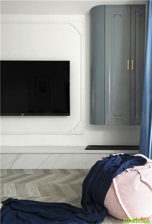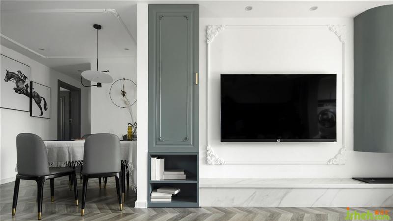 這套案子我并沒有給它定什么具體的風格,其實有點混搭,既希望簡約點,又希望有一些喜歡的修飾在里面,電視背景墻以柜子形式出現(xiàn),除了 有一定的收納以外,還是希望有些特色。柜體的顏色確定好以后,在網(wǎng)上找了幾家定制柜彩色柜門的賣家進行對比,門上面需要有一點線條花紋。南京室內(nèi)設(shè)計師把顏色告訴賣家后,她們做了幾個小色板寄給客戶,我確定好具體精準的顏色以后,油漆師傅對著門板色噴涂柜體,這樣避免了出現(xiàn)太大的色差。電視柜是內(nèi)部木工板基層制作,外面貼雅士白大理石,最右邊鑲嵌了一個蒸汽壁爐,冬天可以開著壁爐,暖洋洋。