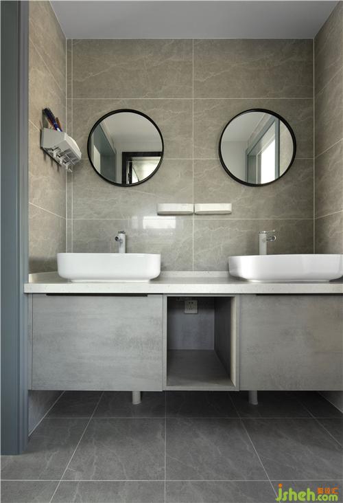 干區(qū)洗臉池做1.6米的了雙盆設(shè)計,柜子懸空了20公分,這樣方便打掃下面的衛(wèi)生。早上老人和小朋友可以同時洗漱。選了水泥灰的門板,干凈利落。南京室內(nèi)設(shè)計師客戶比較喜歡臺上盆,臺上盆好看,可是時間長了,和大理石之間的白色膠會發(fā)黑,需要重新打一遍。