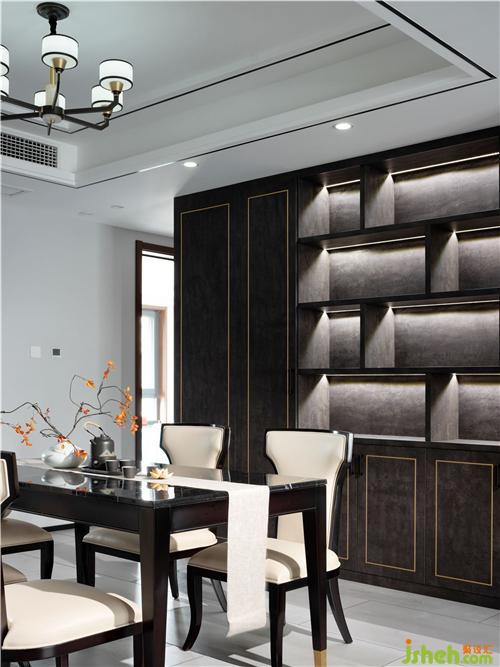 而深色的木質(zhì)酒柜讓整個(gè)餐廳空間表現(xiàn)出大氣,厚重之感,配上燈光濃厚久遠(yuǎn)文化氣息撲面而來(lái)。