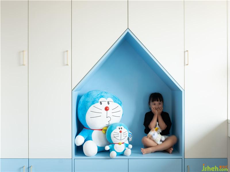 兒童房跳躍性很大,考慮到孩子,不能配色太深沉的,孩子喜歡藍(lán)色,有天性,所以兒童房充滿童趣。