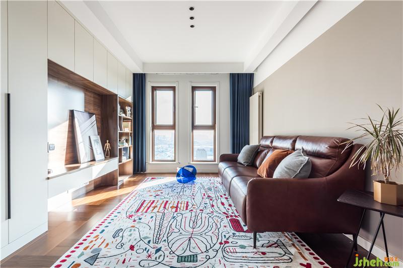 設(shè)計(jì)之初還有一個(gè)有趣的故事,我們的艷青設(shè)計(jì)師在了解過業(yè)主夫婦的習(xí)慣和職業(yè)后,在設(shè)計(jì)方案的配色上主動(dòng)的選用了比較冷靜,純粹的顏色,以此契合業(yè)主的職業(yè),但后來在第二次接觸中發(fā)現(xiàn)我們的業(yè)主對色彩的接受度是很高的,所以愉快的溝通之后,能發(fā)現(xiàn)這個(gè)家的確是色彩滿滿,清新俏皮的餐廳拼色墻,客廳沙發(fā)是飽滿的亮橙色以及抽象畫地毯,主臥的墻面和洗手間也是不單調(diào)的顏色,用色彩來減壓的家居設(shè)計(jì)法,大家也可以Get這一招~