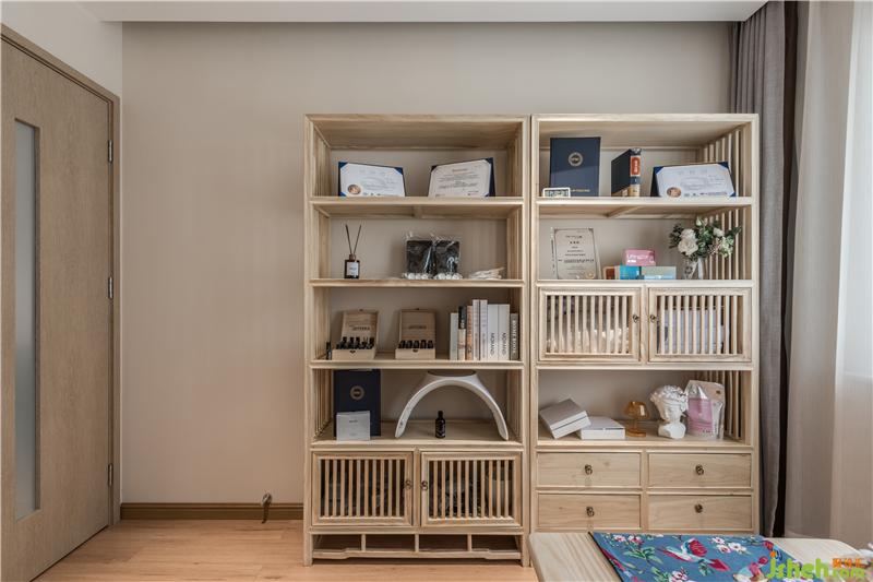 陳列柜是經(jīng)典木色和透視元素的搭配