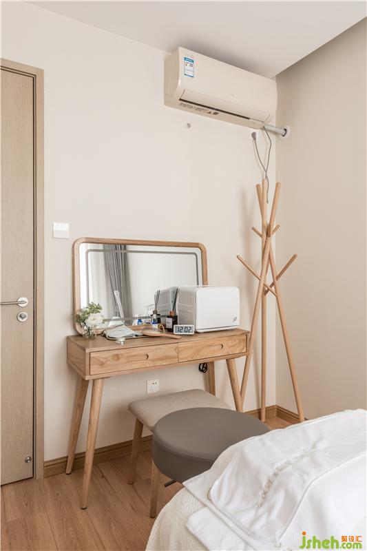 明亮的光線能暢通無(wú)阻的進(jìn)入這個(gè)空間,原木的質(zhì)感,天然而質(zhì)樸,為來(lái)到這里的人帶來(lái)情緒的安撫。一扇明亮的窗戶,一張床,一個(gè)陳列柜,一個(gè)衣架,沒(méi)有一絲多余的裝飾,讓心靈如臨一片曠野般舒適。
