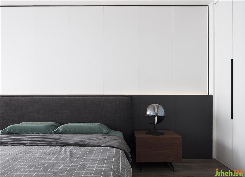 主臥背景墻采用定制墻板 結合隱藏式燈帶