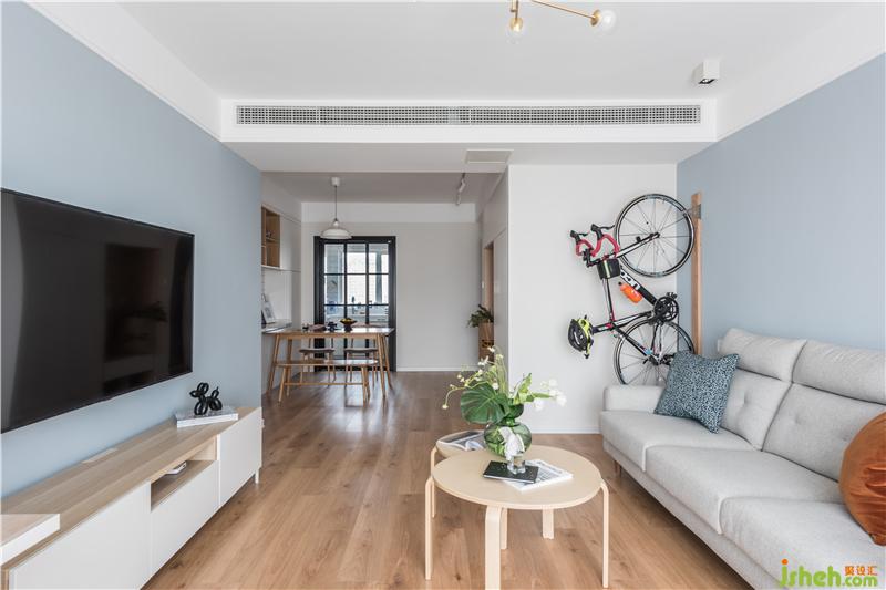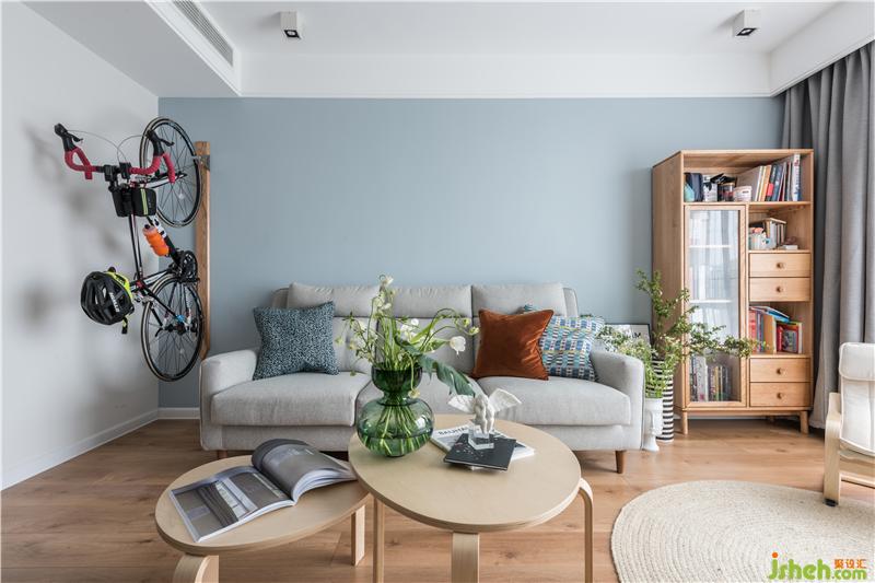 客廳還放置了一個(gè)山地自行車,是爸爸的愛好,他說希望以后有機(jī)會(huì),可以和孩子一起去野外騎行。這里擴(kuò)大所有可利用的空間,原本的陽光區(qū)被納入客廳變成一個(gè)供孩子閱讀和大人工作的親子互動(dòng)區(qū)。