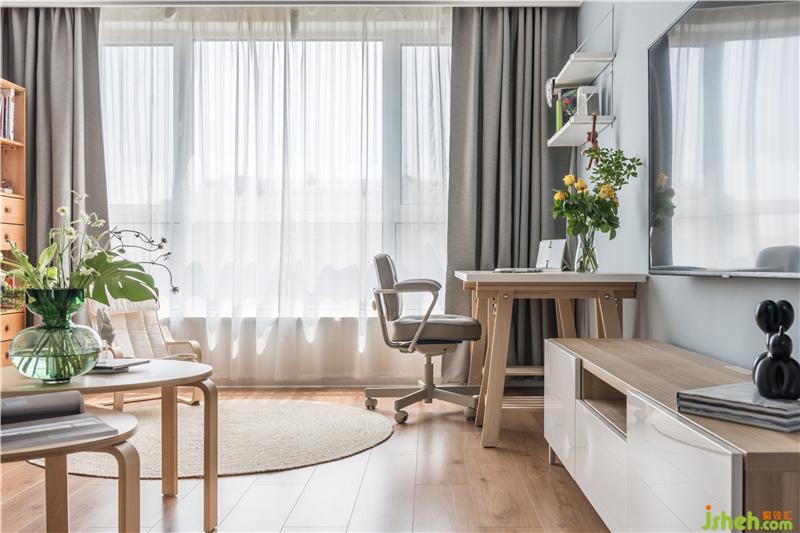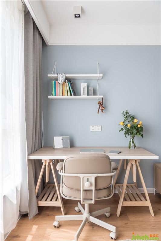 我們常常會(huì)想,一個(gè)有孩子和大人的親子空間最需要設(shè)計(jì)什么呢?留給孩子的活動(dòng)空間不應(yīng)該僅僅是一間兒童房,應(yīng)該安排一個(gè)大人和孩子友好共處的互動(dòng)空間。所以向陽的區(qū)域,我們結(jié)合客廳,把它作為一個(gè)有兒童閱讀區(qū)+大人工作臺(tái)的親子互動(dòng)空間。