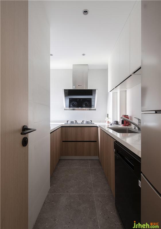 原始戶型狹長(zhǎng)采光不好的廚房,經(jīng)過巧手改造變身”U型“廚房操作布局。