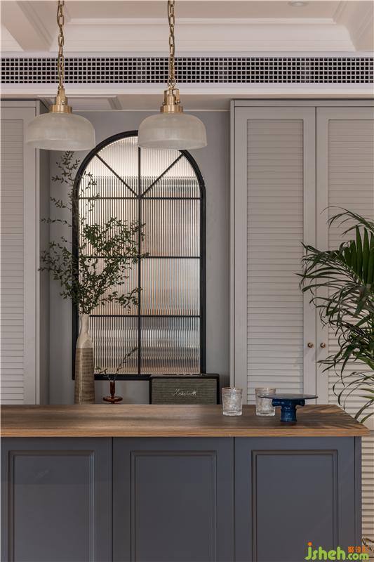 玄關(guān)柜背面也是正常使用的收納柜,天津別墅設(shè)計柜體表面用烤漆做了折頁式的紋理,造型別致。同時結(jié)合長虹玻璃造型的窗戶,空間顯得通通,多種材質(zhì)搭配,從視覺上帶來了通透、流通的光影感,空間被放大。