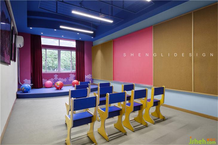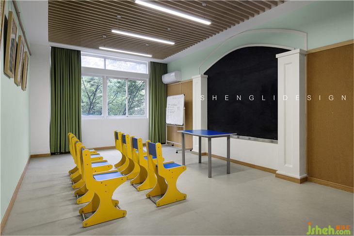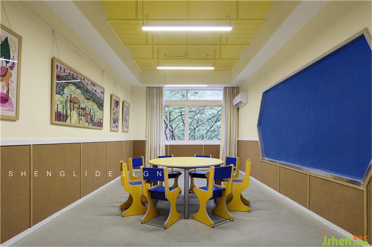 整個(gè)美術(shù)室以明快、清新、活潑的整體風(fēng)格設(shè)計(jì),迎合了少年兒童的心理,滿足孩子天性活潑的活動(dòng)需求,營(yíng)造輕松舒適的繪畫環(huán)境,桌椅和周圍的環(huán)境都充滿了童趣。