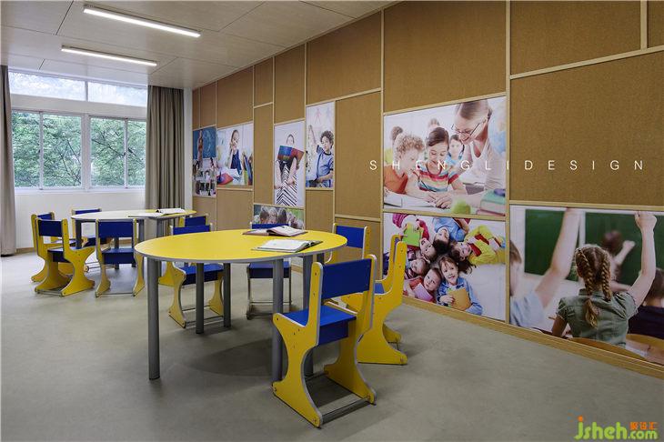 學(xué)校是安全的、可靠的、舒適的、溫馨的家,設(shè)計(jì)師摒棄了高大上的設(shè)計(jì)思路,實(shí)用、樸素、親切、溫馨是它的設(shè)計(jì)主題,布置的物品也都是方便更換或者移動(dòng)的。
