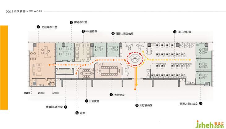 結(jié)合該企業(yè)的歷史背景以及它的企業(yè)文化,設計師對內(nèi)部的狹長空間重新設計,使其充分滿足了一個50人企業(yè)的的功能需求。