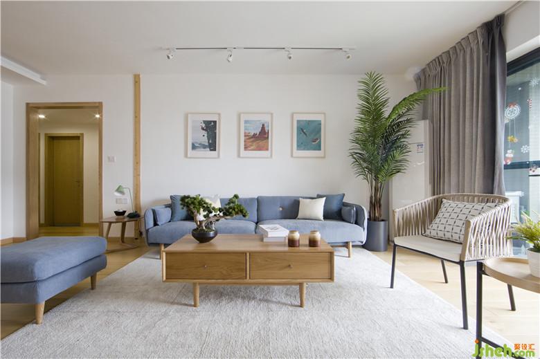 客廳空間方正空間大,布局上大方處理就好了,空間上主要注重軟裝的搭配和顏色的層次。白色墻面在桑拿板木條點(diǎn)綴下有一點(diǎn)靈動(dòng)的色塊的,讓空間變的有趣味了。