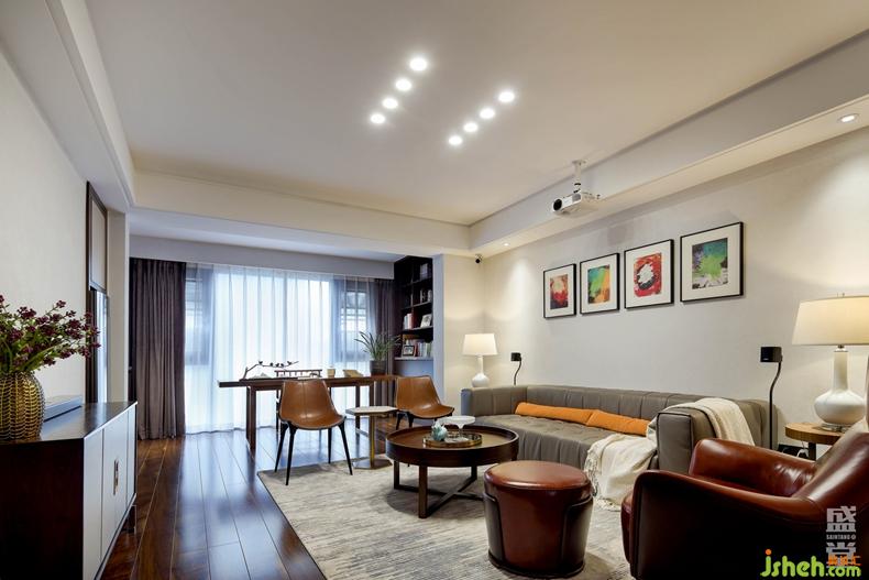 軟裝上將休閑空間與書房區(qū)做了細(xì)致的功能分離,既彼此獨(dú)立又互相依存。休閑空間復(fù)古皮質(zhì)沙發(fā)的搭配提升了空間的品質(zhì)