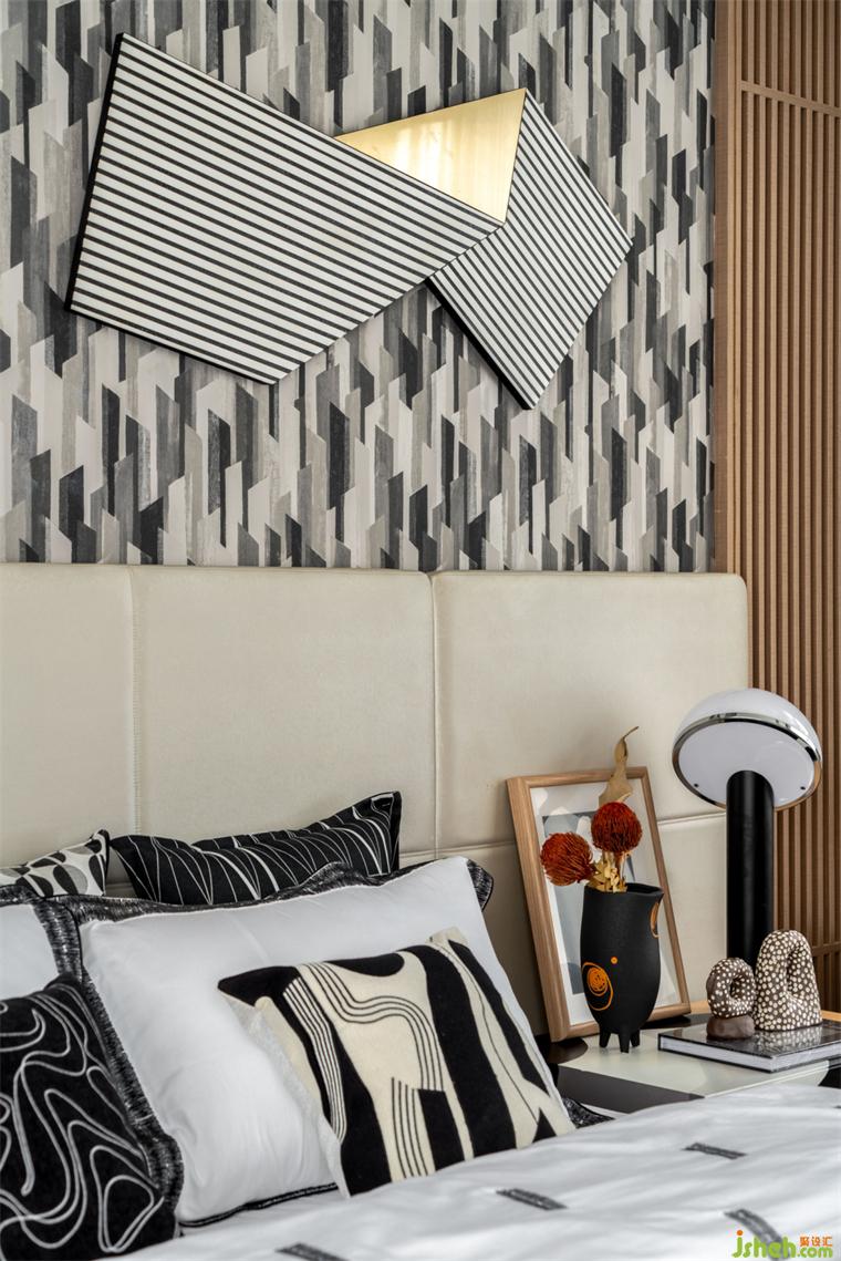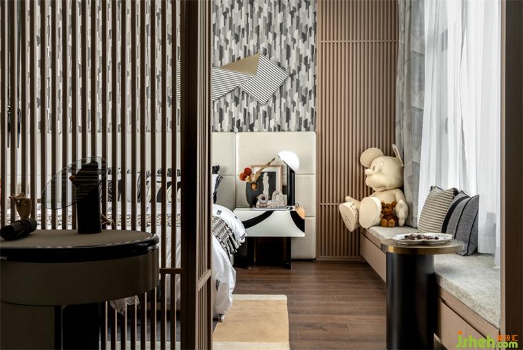 二層的男孩兒房依然以秋日鋪色,增加線條設(shè)計(jì)與幾何圖形增添想象空間與無數(shù)可能性。