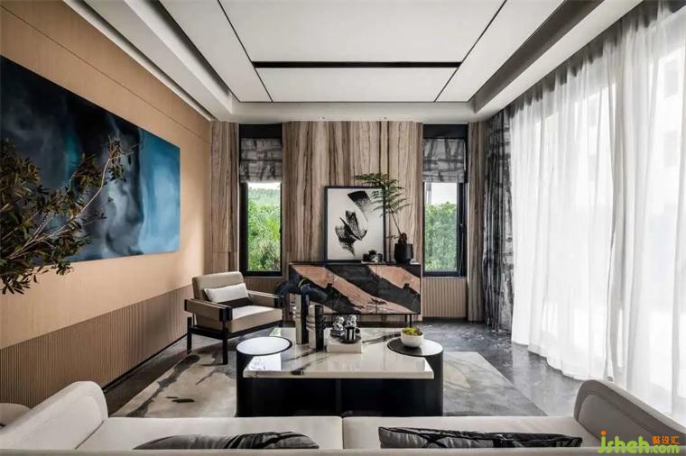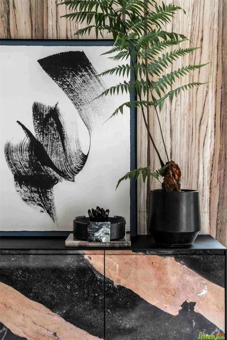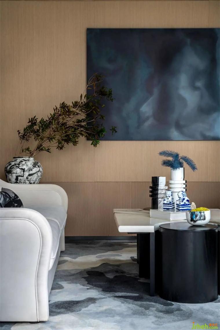 以皮革沙發(fā)、窗簾為畫布,以大理石桌面為畫布,樣板房設(shè)計(jì)以光潔地面與舒適地毯為畫布,以各類陶瓷為畫布,以實(shí)際畫布為畫布,形狀各異、材質(zhì)不盡相同,潑墨、灑墨、點(diǎn)墨……或輕或重,肆意而游刃有余。