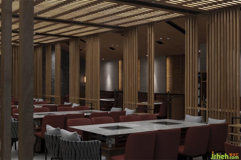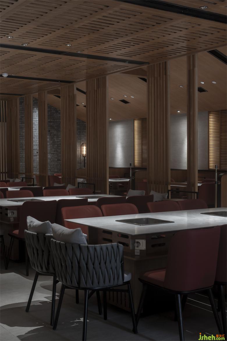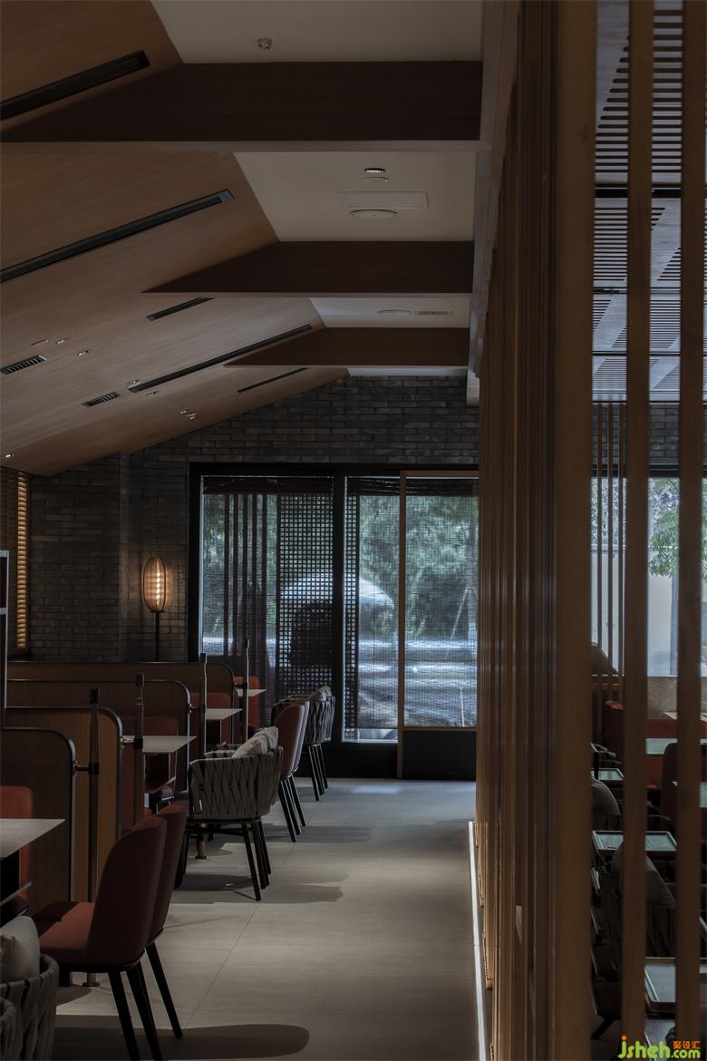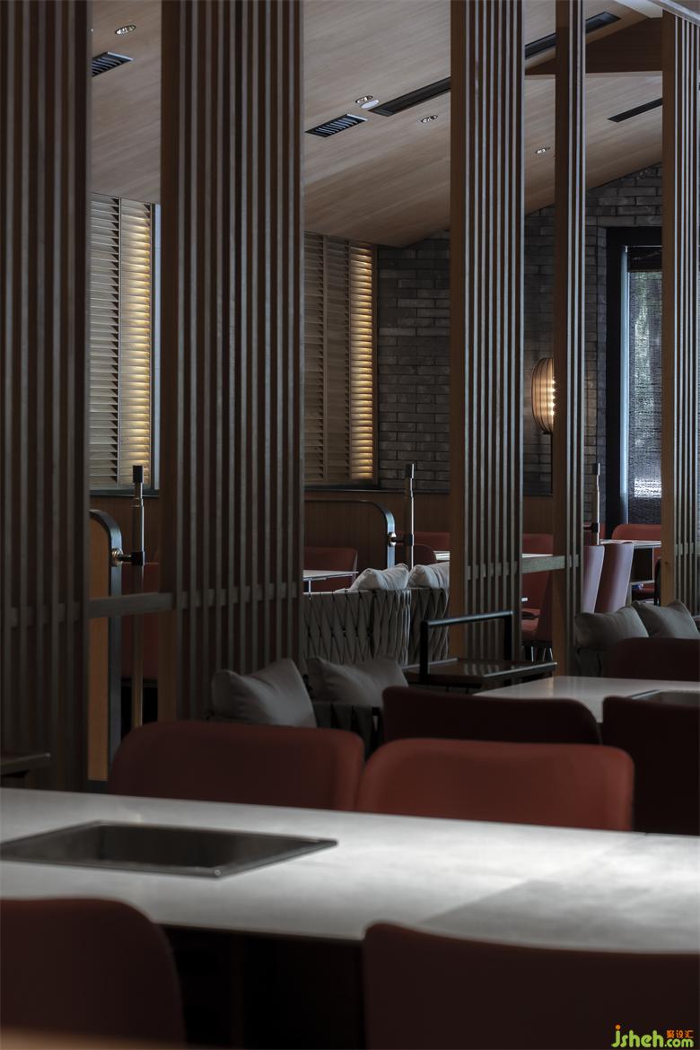 錦城印象成都餐廳設(shè)計(jì)高新店,是集嘉設(shè)計(jì)受委托進(jìn)行品牌升級改造的第二家錦城印象門店。項(xiàng)目毗鄰高新區(qū)in99商業(yè)綜合體,是錦城印象品牌每日營業(yè)額冠軍門店,面積最小、上客率最高。在保證業(yè)態(tài)和高頻效翻臺率的同時,成都餐廳設(shè)計(jì)師利用園林景觀的設(shè)計(jì)邏輯--「空間越拆越小,空間越隔越大」,在大廳兩側(cè)設(shè)置了木柵隔斷,擴(kuò)大空間視覺效果。