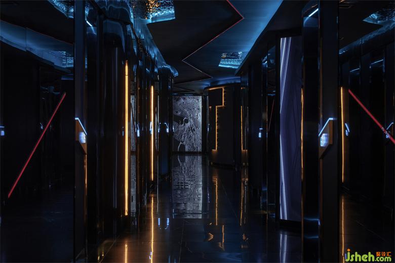 時間讓凝固的生命產(chǎn)生了靈魂,空間也就擁有了時間的深度。一個由空間和時間形成的交互性,使得更為完整和充實,我們在KTV設計中利用玻璃、不銹鋼鏡面,透明與反射的效果,虛實疊加與重合,體現(xiàn)光影與周邊的融洽,進一步強化了時空感。