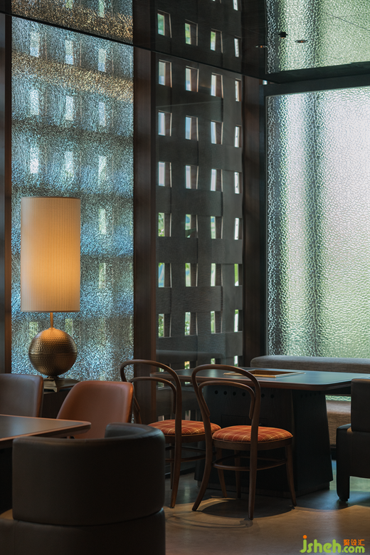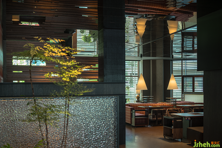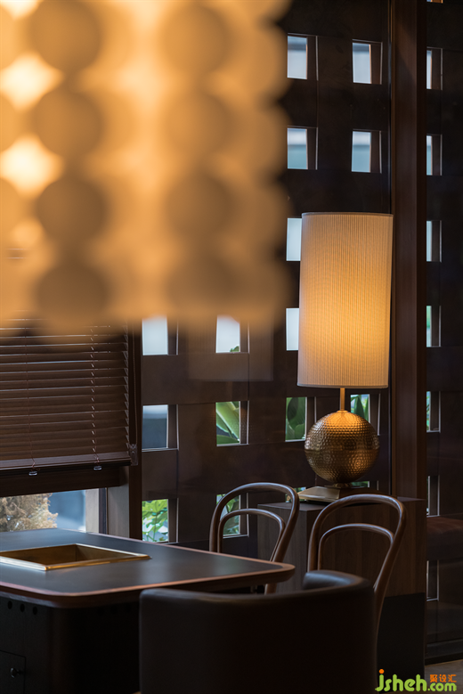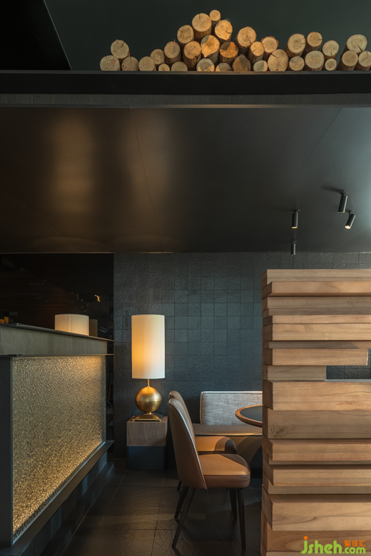 空間層次上的高低處理、多種透與不透、隔斷介質(zhì)的穿插, 火鍋店設(shè)計(jì)超常規(guī)尺度編制隔斷,仿佛捕夢(mèng)網(wǎng),與紅色異形石材地拼、充滿肌理感堆積木料、秩序感陣列吊燈形成獨(dú)特的空間語(yǔ)言體系。類似電影的跳接剪輯、蒙太奇手法,這些手法的運(yùn)用讓空間帶有些許電影氣質(zhì),如夢(mèng)如囈語(yǔ)的電影旁白般貫穿始終,滲透著設(shè)計(jì)師對(duì)“夢(mèng)”的理解。