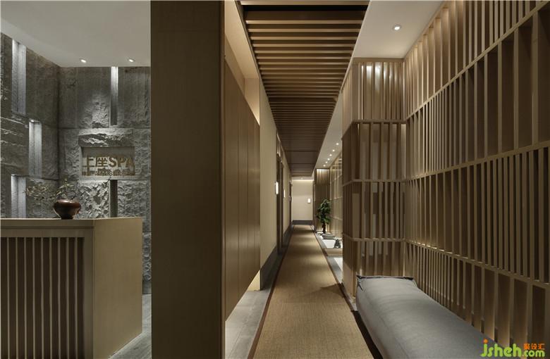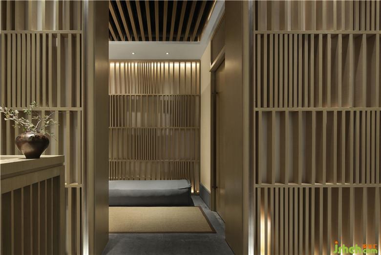 沒有多余的裝飾,但一定是江南的,帶著有邏輯的基調(diào),一只古董紫銅回流花瓶已能烘托出氣氛,麻質(zhì)地毯貫穿其中,用視覺傳達(dá)圖形的方式表達(dá)出對(duì)六朝古都精致SPA的向往!
