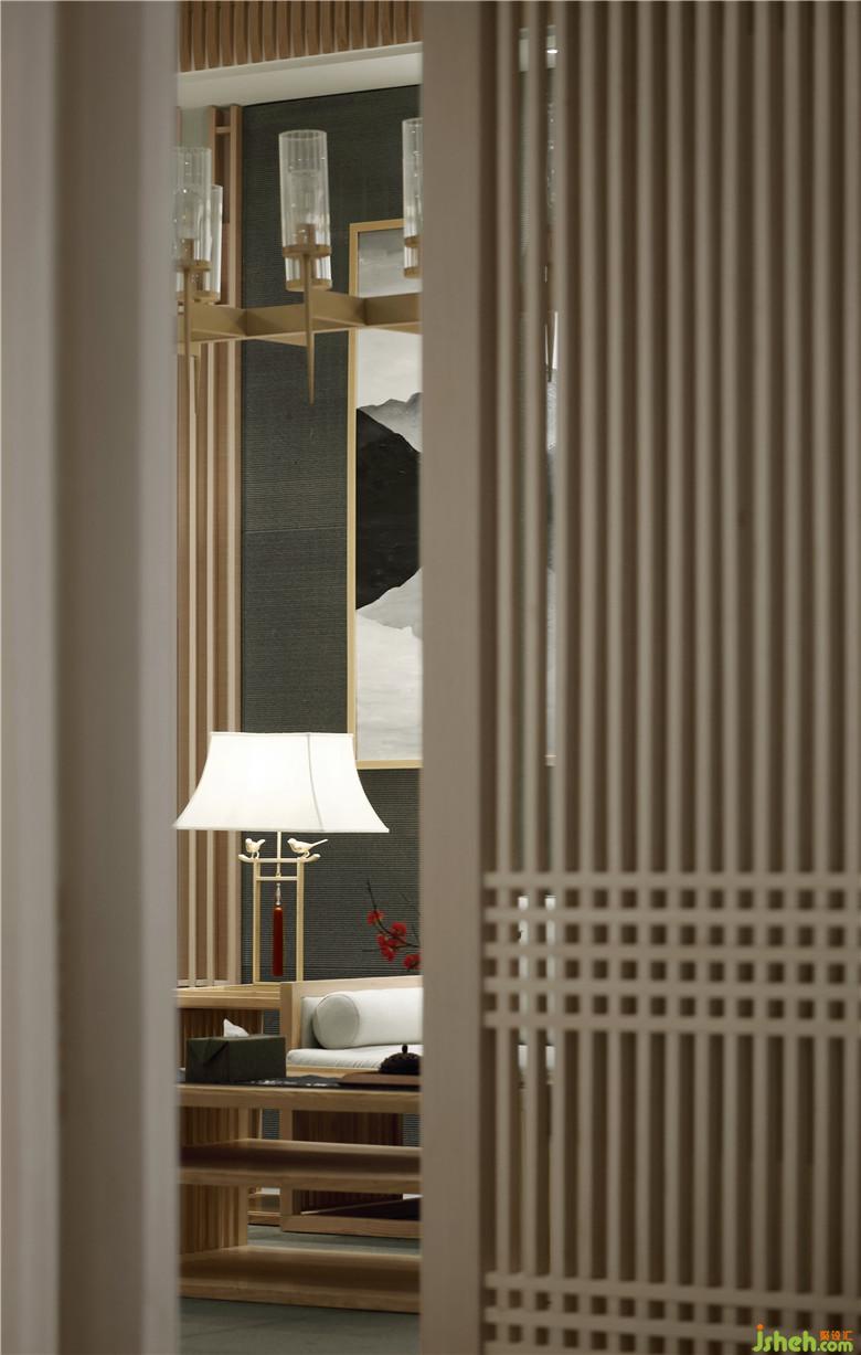 轉角充滿思念,滿目的格柵精妙的凸顯出一輪半月,在這水墨詩篇間留下了動人的一筆…