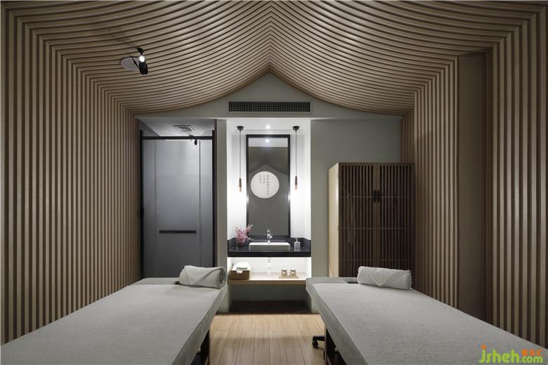 獨特的文化底蘊,更多的表現(xiàn)用一種創(chuàng)造式的設計思維去感知世界,大面積的原木格柵延伸至頂面,使空間實體化。結合處,突出上座SPA的精髓所在,凡事以‘人’為本…