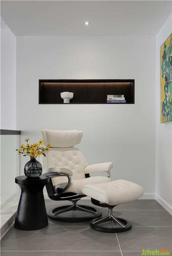 休憩平臺是UNCLE沈團隊,打破原有二三樓挑高重塑一二樓結(jié)構(gòu)而延伸出來的喜悅。它是一個靈活機動的空間,也許有一天,這兒會被一架鋼琴而取代,他對主人說要給未來留下無限的可能性…