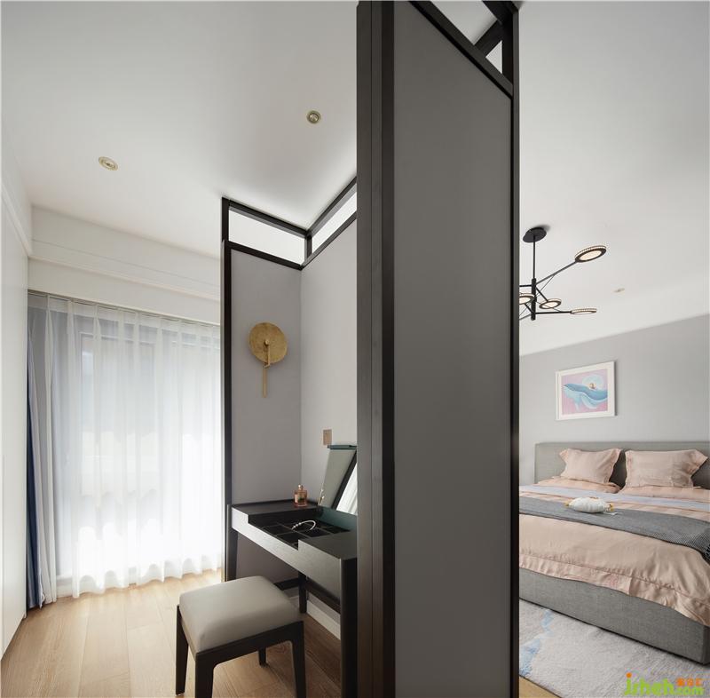 主人的氣質(zhì)里散發(fā)著身不由己的浪漫與義無反顧的執(zhí)著,這些UNCLE沈都考慮到了,在主臥打造時,拆除原有窗戶,合理規(guī)劃,讓光線傾瀉進來,月光似水,如詩一般?;⌒伍T套的漸入,讓整個空間頓時變得柔軟起來…別墅裝飾