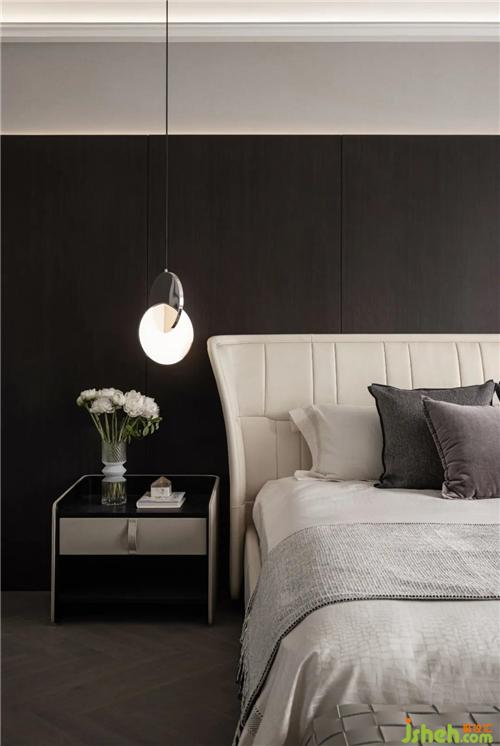 主臥選用簡約深色背景