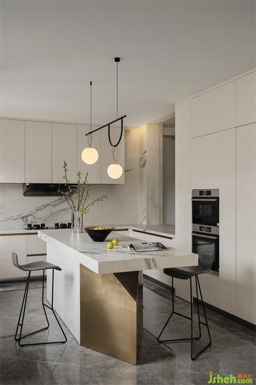 圓形餐桌方形島臺遙相呼應(yīng)方與圓有機(jī)結(jié)合