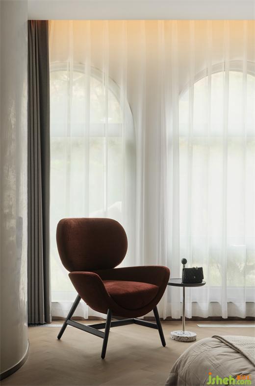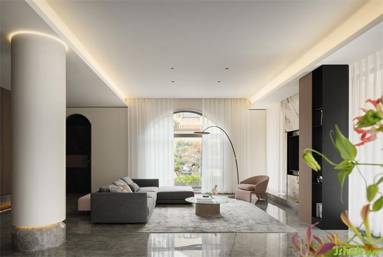 別墅裝修設(shè)計拱形落地窗融入將室外景框映成畫