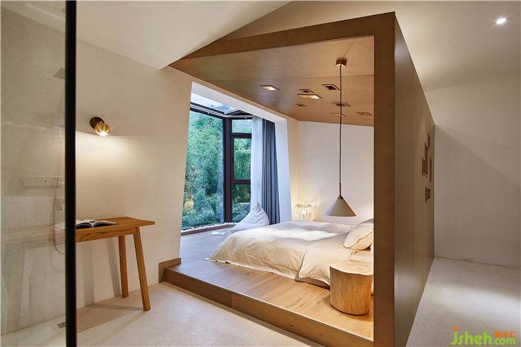 汀步式走道設(shè)計(jì)。在庭院間有一片景觀水池和一片泳池,在穿插的水池間橫置一個(gè)步道,設(shè)計(jì)師意在放緩行人的腳步,伴隨著涓涓的水流聲,感受最純粹的自然風(fēng)情。
