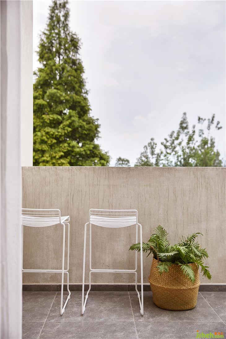 入戶“木盒子”設(shè)計。進入室內(nèi)前,需經(jīng)過一個“木盒子”,拾級而上,迎面而來的便是滿眼的綠色植物。巧妙地將人、物、空間相融合,使空間不再單調(diào)而是相互關(guān)聯(lián),處處體現(xiàn)著設(shè)計思考。