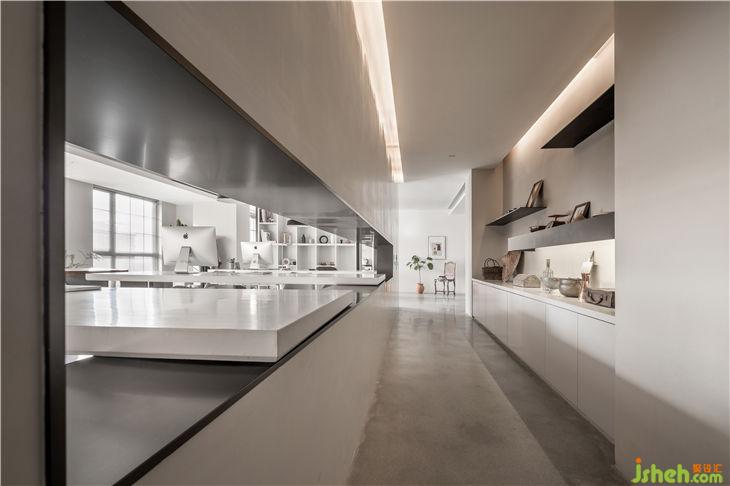 探入其中,中間的大體塊將訪客動線與員工動線做了很好的區(qū)分,同時設(shè)計師將墻體打通,開了一個趣味性的窗口,前來拜訪的客人與員工不會互相影響,讓空間能夠既獨立又可以讓彼此產(chǎn)生聯(lián)系。