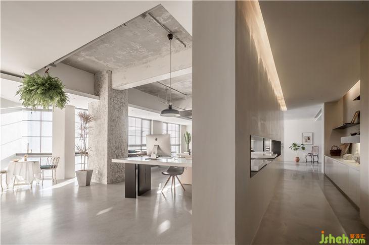 辦公室的每一件家具特別定制,從市場淘來的舊木頭做成的會議桌以及墻面擱板,環(huán)保材料做成的辦公桌,寄托著主人對于生活的熱愛與追求美好的態(tài)度。