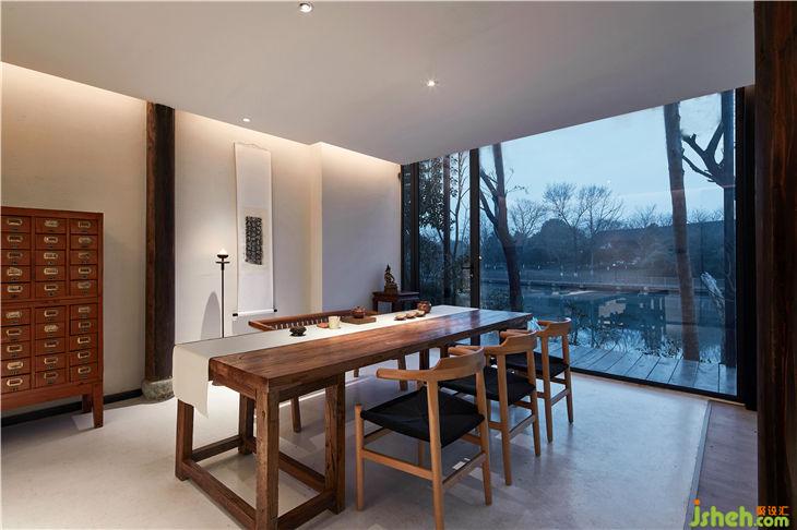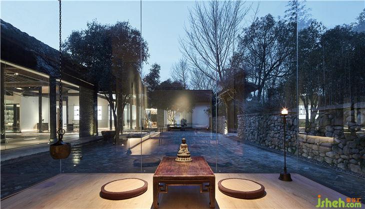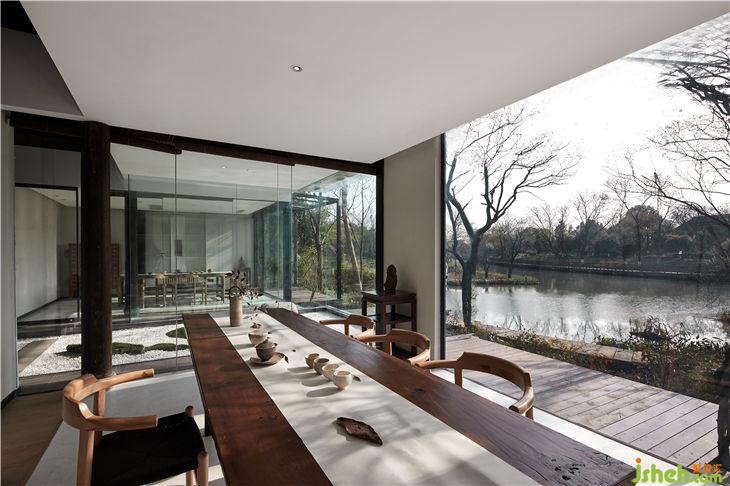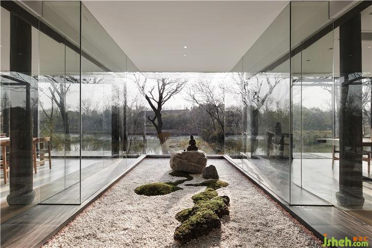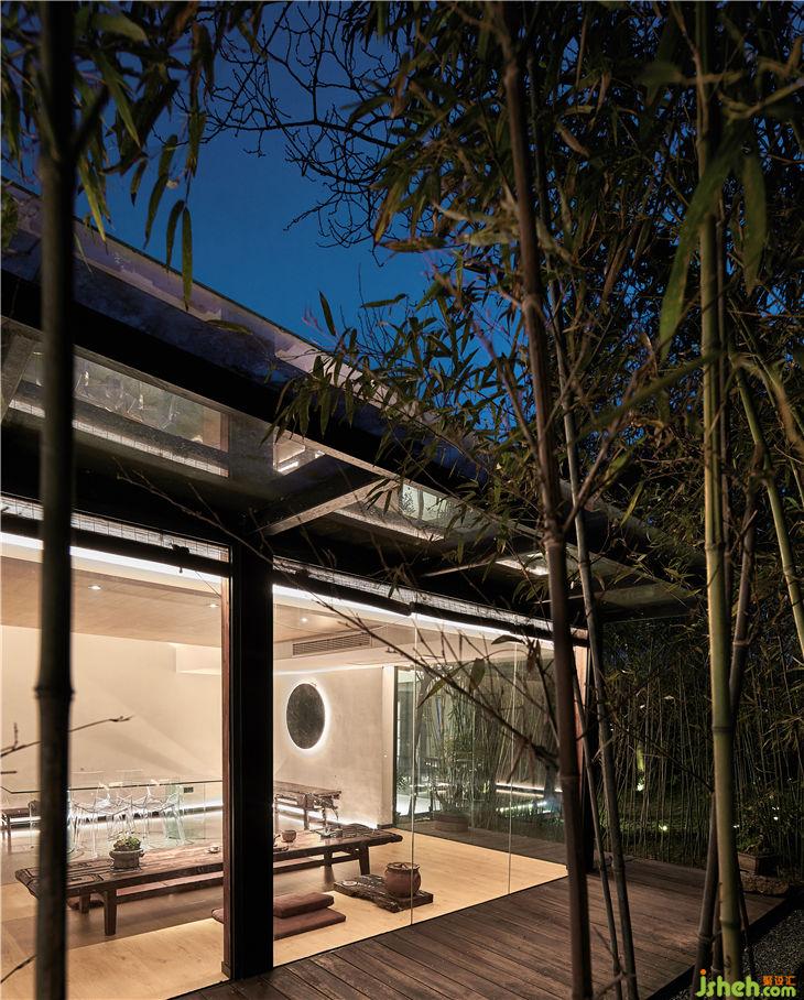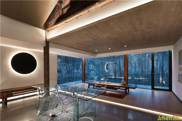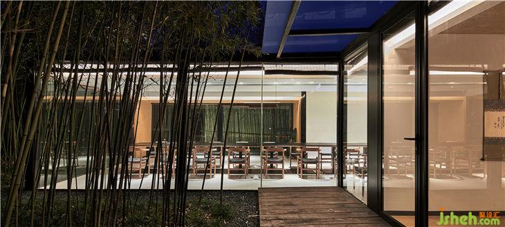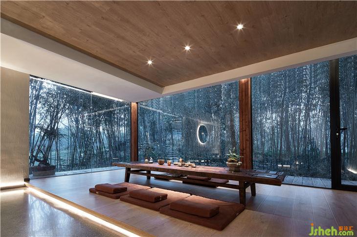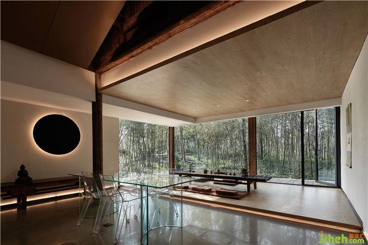 餐廳設計概念是把一個“玻璃盒”置入竹林風景中,自然與空間結合地淋漓盡致。體現(xiàn)出了傳統(tǒng)與現(xiàn)代共生,人建筑與自然共生的理念。