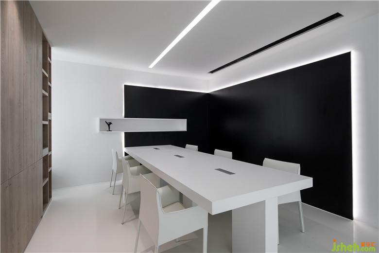員工辦公區(qū)大面積采用了白色,線型的暖光燈為空間加強了結(jié)構(gòu)性,顯得更加自由。辦公桌沿著頂部燈的走向分布,呈現(xiàn)出有秩序的美感。