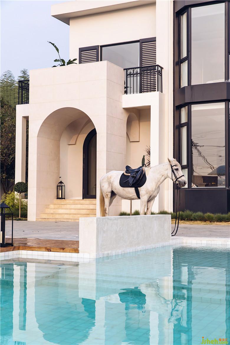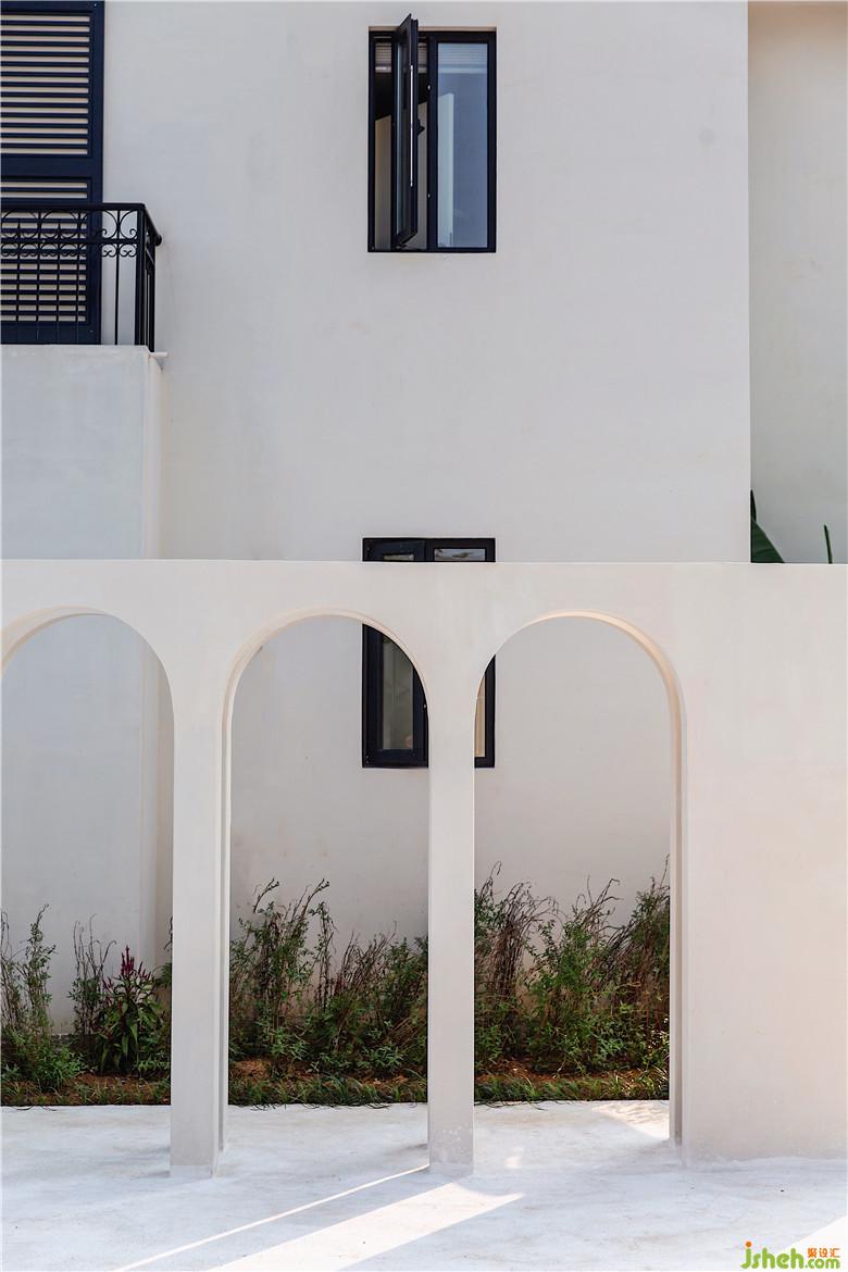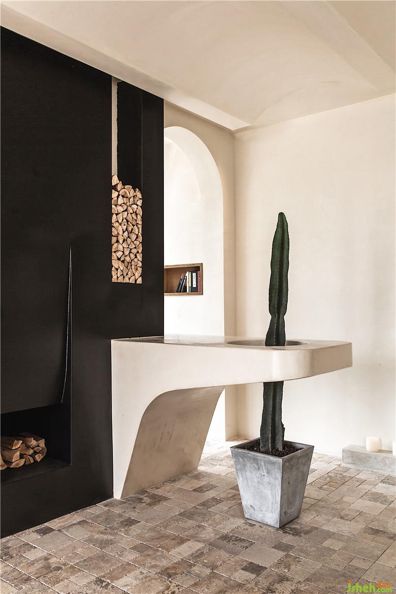 走入戶外派對區(qū),拱形的結(jié)構(gòu)式造型墻為空間增添了觀賞性,同時又能與人產(chǎn)生很好的互動。一側(cè)有著花園壁爐,點燃壁爐,亮起燭火,在自然中享用晚餐,愜意又舒適。
