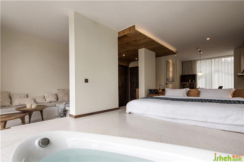 駐85·7月僅有5間房,然而每一間都設(shè)計(jì)得別具一格,為確保每間房都能夠最大限度地觀賞遠(yuǎn)處美景,設(shè)計(jì)師使用了大落地玻璃,在能觀賞到景觀的同時也能讓山水映入室內(nèi),仿佛遠(yuǎn)處的美景就在眼前,盡收眼底。酒店設(shè)計(jì)