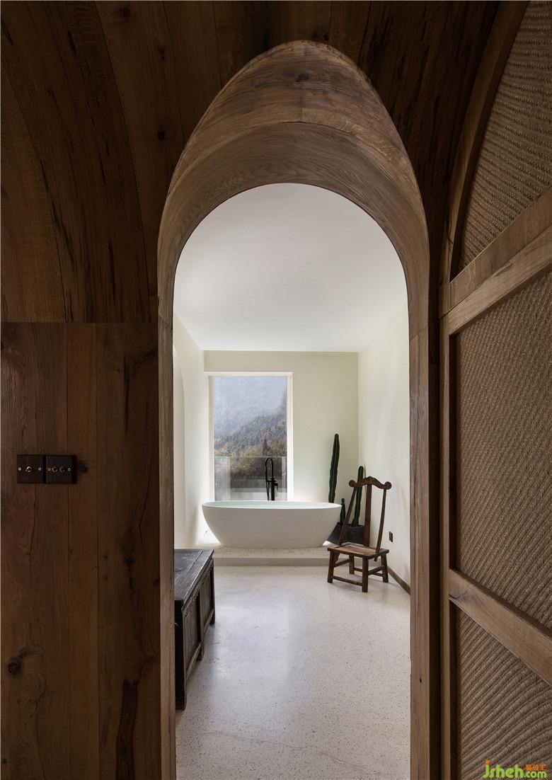 設(shè)計(jì)師結(jié)合船、以及橋洞的概念,將拱形元素拆解到走廊中、頂部以及嵌入墻中,空間仿佛擁有了重重儀式感,在這里住客能夠自由穿梭,變得充滿趣味與新鮮感。