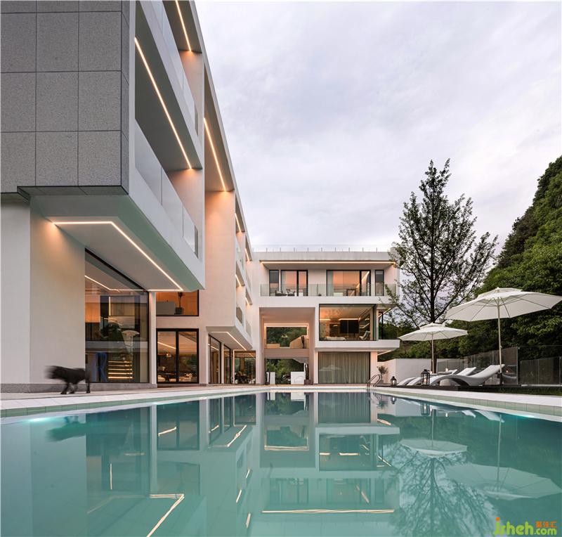 將底層架空,給予建筑通體白色,猶如一片潔白的云朵懸浮在空中,在周圍植物的映襯下散發(fā)出神秘安靜的氣息。