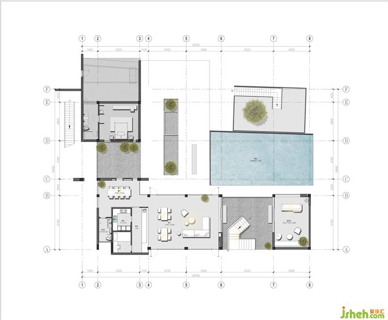 設(shè)計師希望每間房都能映出室外的風(fēng)景,房間有著270°落地玻璃窗,空間變得通透純凈。