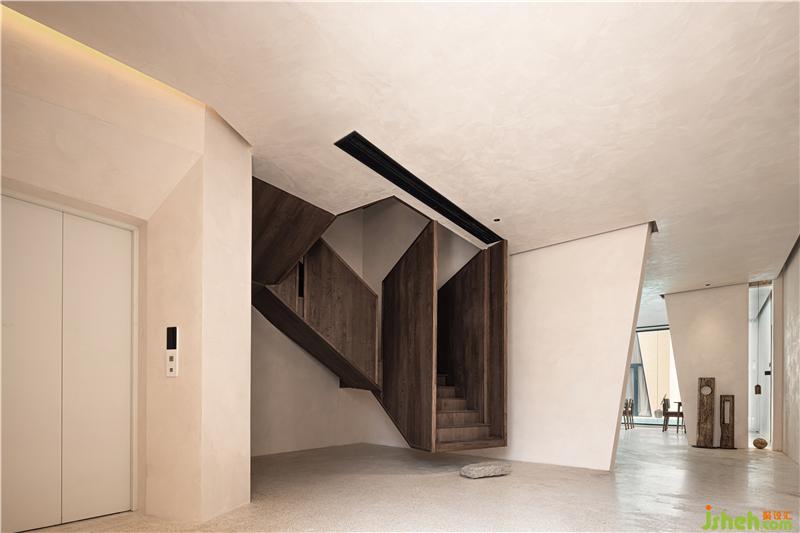 木質(zhì)的樓梯像是懸浮在空間中,猶如一個藝術(shù)裝置。